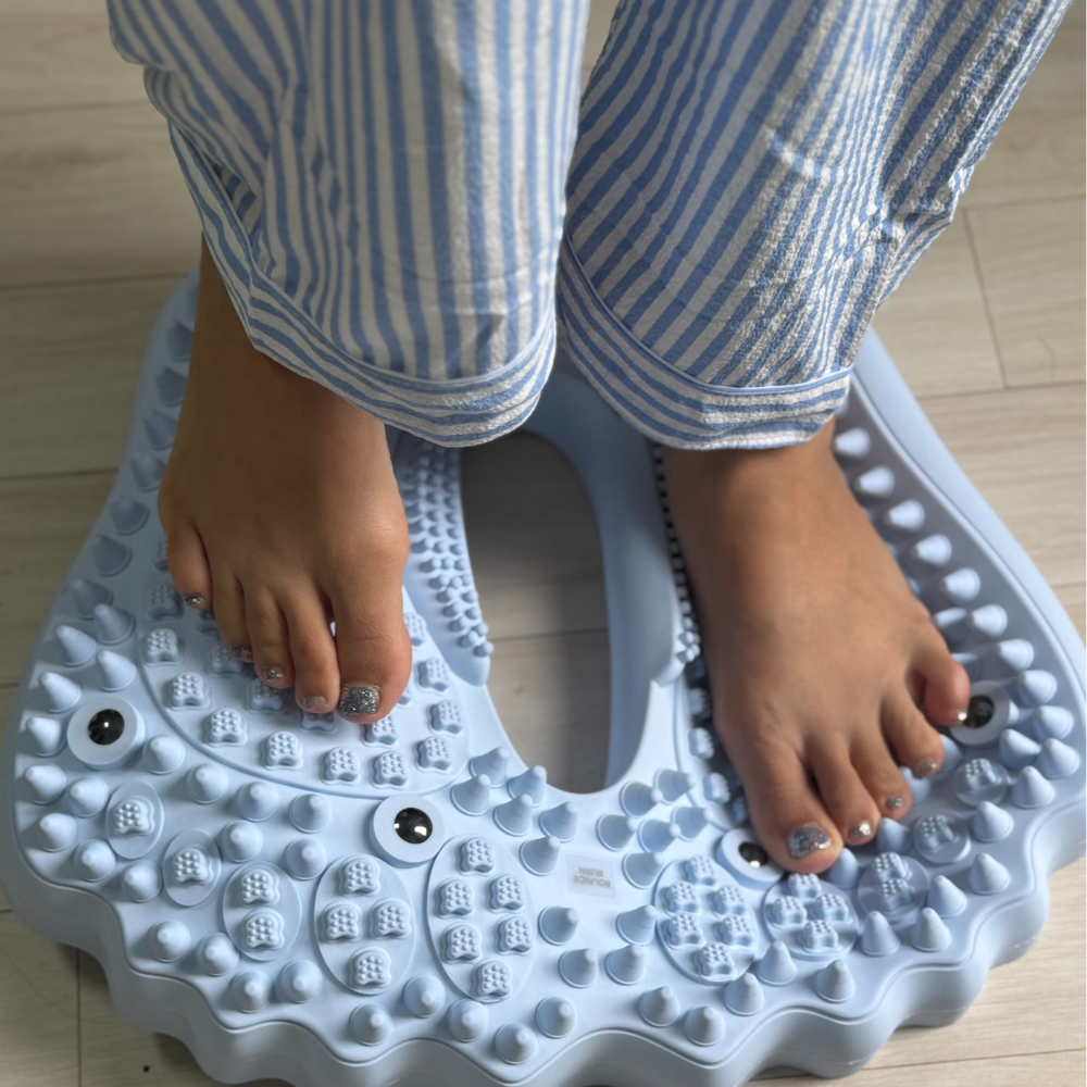 326 acupressure nodes awaken your feet. The warmth travels upward through your calves, thighs, and beyond. Total body fluid drainage starts from the ground up.